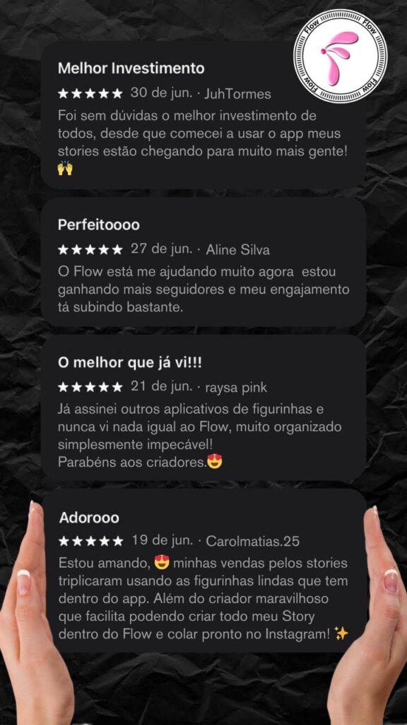 O Flow Creator é o App definitivo para quem vive de conteúdo! Com mais de 20 MIL figurinhas prontas para copiar e colar diretamente nos seus stories, o Flow está transformando perfis comuns em máquinas de engajamento e vendas.